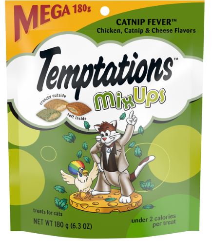 PREMIOS PARA GATO TEMPTATIONS MIX UPS POLLO, CATNIP Y QUESO 180G