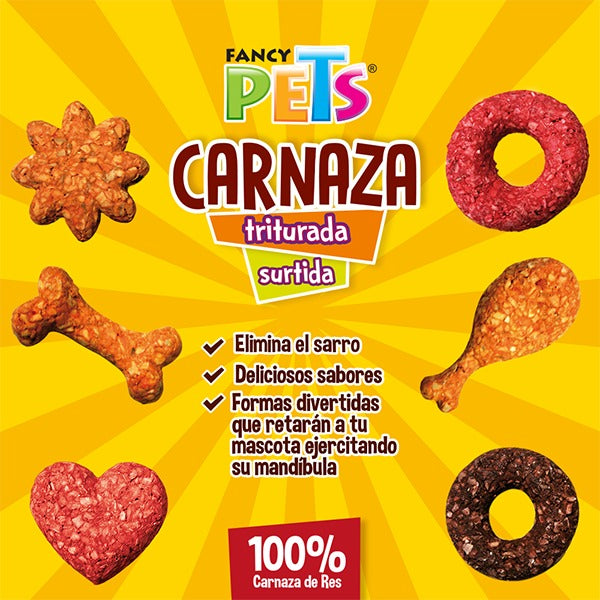 Beneficios Nutricionales: Además de ser deliciosa, esta carnaza triturada está enriquecida con nutrientes esenciales que apoyan la salud general de tu perro, promoviendo un pelaje brillante y una piel saludable.