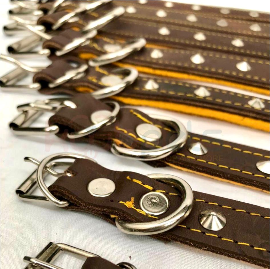 COLLAR ELABORADO CON 100% PIEL VACUNA RECUBIERTO CON LUBRICANTE PARA PROTEGER LA PIEL DE LA LLUVIA Y EL  POLVO.CUENTA CON UN FORRO DE FIELTRO PARA LA PROTECCION DE LA PIEL DE TU MASCOTA .HERRAJES METALICOS. DECORADO CON ESTOPEROLES.
