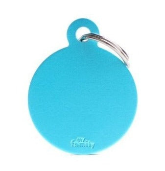 Con la placa redonda azul cielo grande, tu mascota luce fresca, elegante y siempre identificada.