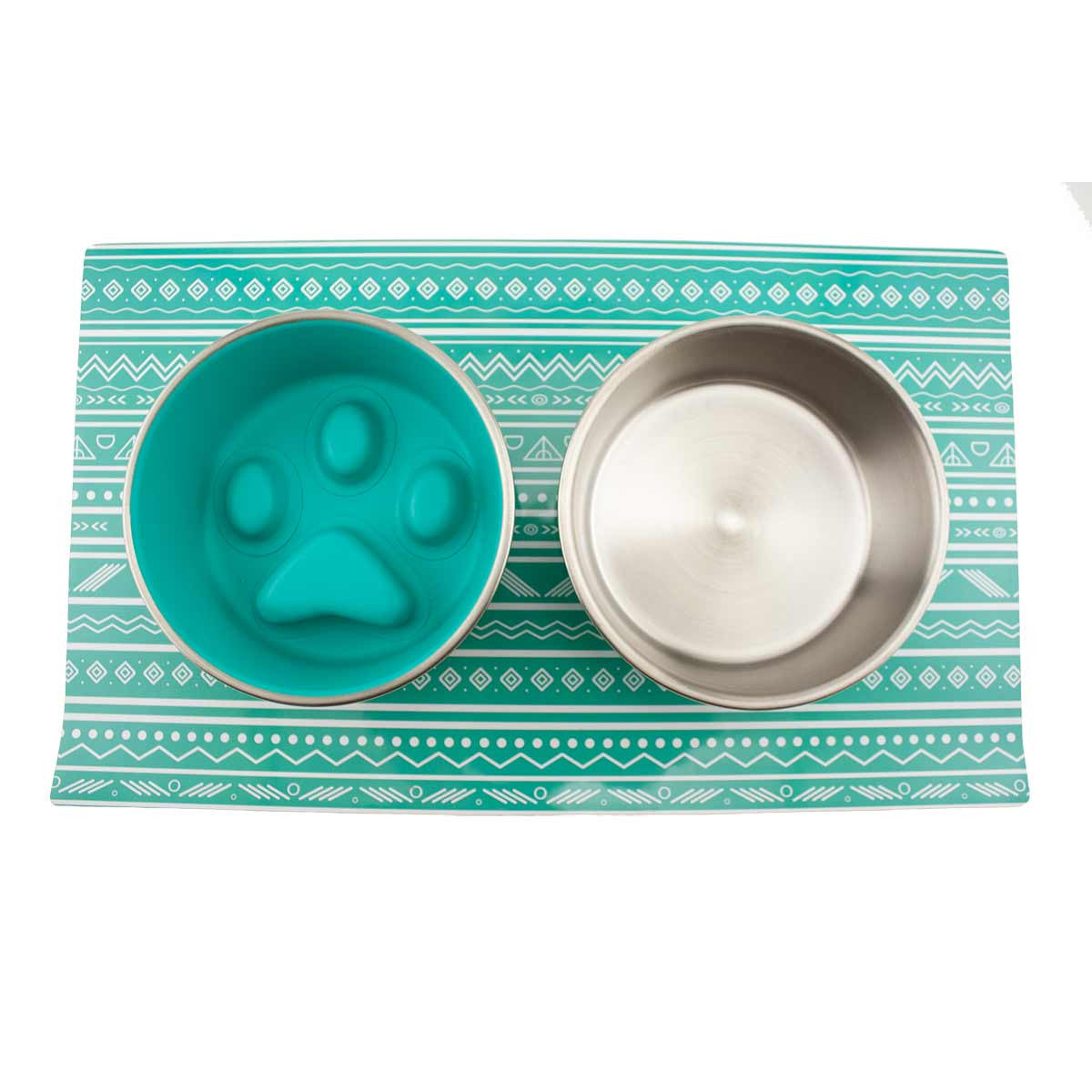 Este combo es ideal para los perros que les gusta jugar con los platos, están diseñados para que estos no se muevan y se queden en su lugar ya que cada tazón tiene un imán que sirven para que se adhieran al tapete magnético.