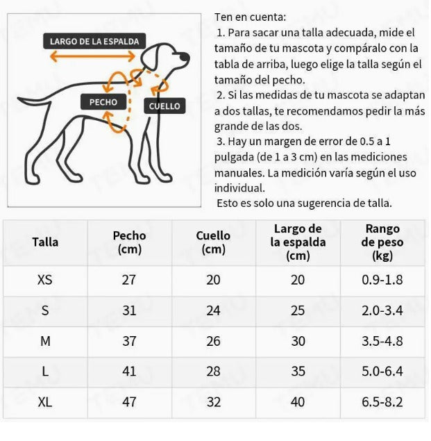 Gracias a su ajuste ligero y transpirable, tu perro podrá moverse con libertad sin incomodidades. Disponible en varias tallas para razas pequeñas y medianas.